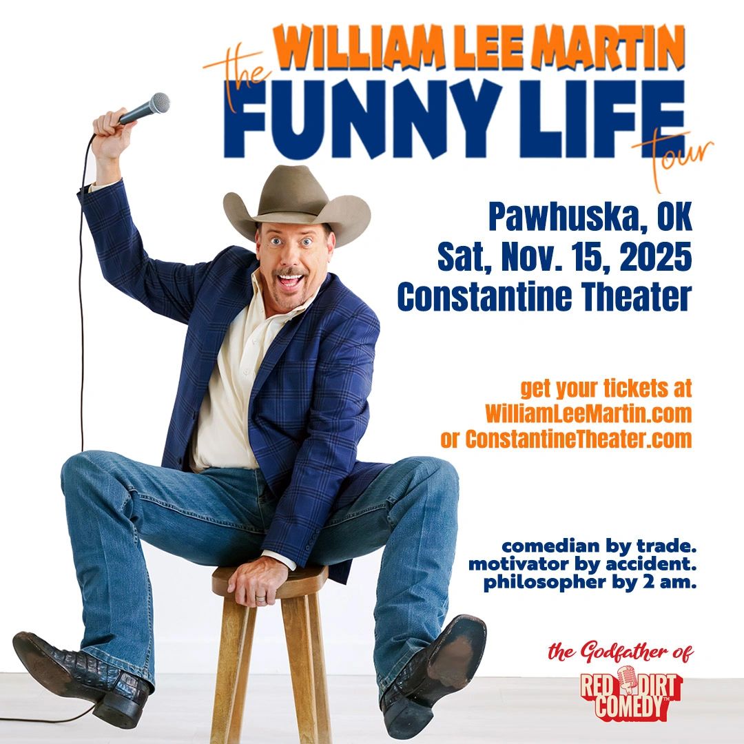 Get ready for a night of laughs with Comedian William Lee Martin! Texas-sized humor in a family friendly environment. Get your tickets now before they're gone.